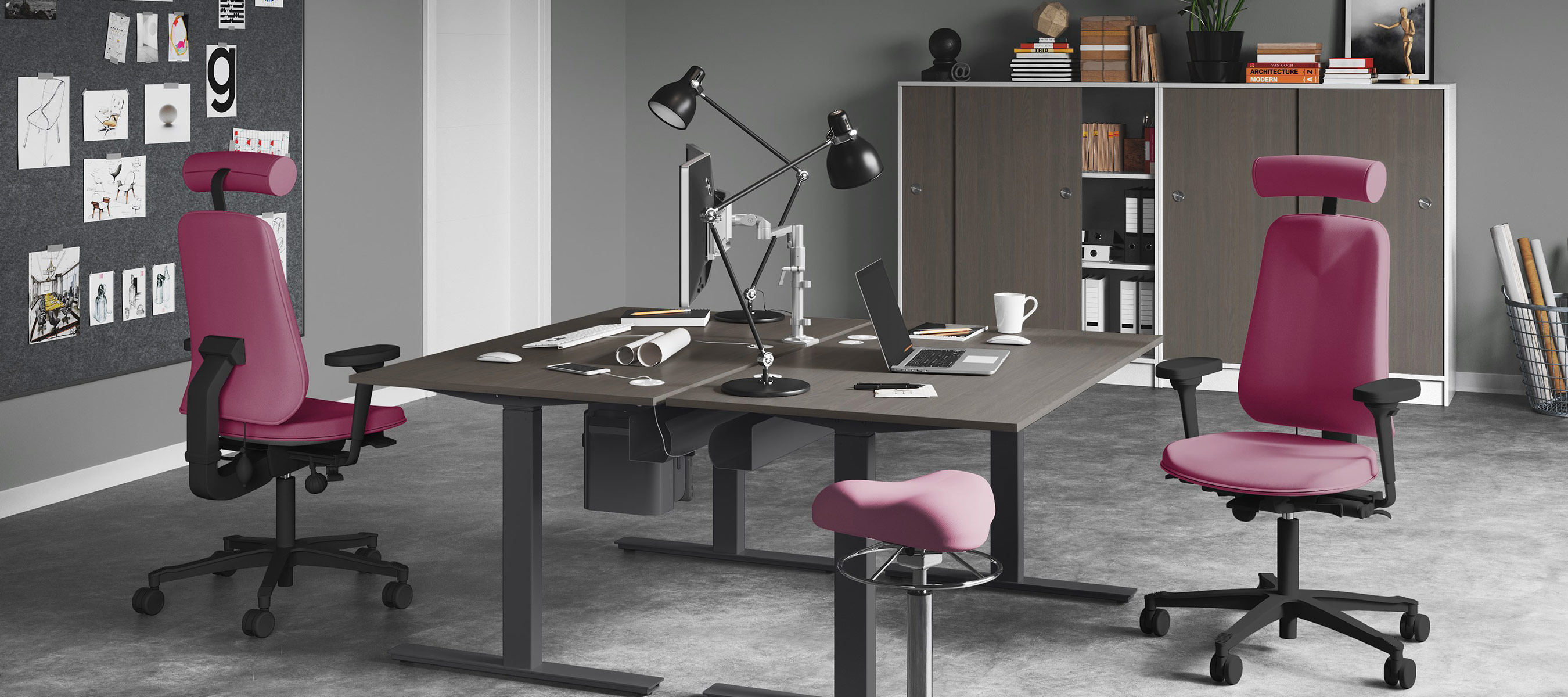 Vi kan erbjuda Lanab Groups kompletta sortiment av ergonomiska kontorsstolar, höj- och sänkbara skrivbord och smarta förvaringslösningar. Behöver du möbler till konferensrum, lunchrum, reception eller andra gemensamma ytor finns även det.