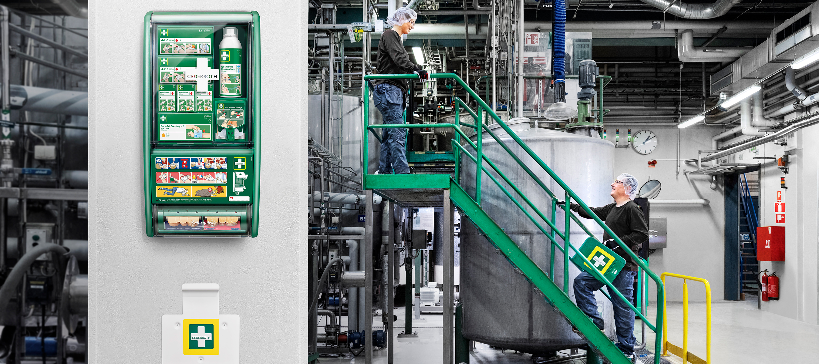 En Första Hjälpen-station är en självklar trygghet på arbetsplatsen, men bara om den är komplett. Fyll på regelbundet med plåster, sårtvätt och andra förbrukningsprodukter från Cederroth för att vara säker på att hjälpen alltid finns nära till hands.