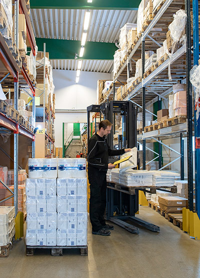 – Det är en service vi har, berättar Magnus, som är lageransvarig. Jag tror kunderna uppskattar att vi är flexibla. Jag upplever inte att någon försöker utnyttja att vi har den servicen utan det är om de missat beställa nåt och snabbt behöver komplettera, eller om någon viktig produkt oväntat tagit slut som de ber oss om hjälp utöver den vanliga ordergången. Många kunder har vi jobbat med länge så de vet vad vi kan och vi litar på varandra. Att vi fyller en viktig funktion för näringslivet med denna service är tydligt. I snitt hanterar vi 40 stycken i veckan vilket betyder att vi löser ett problem för någon varje timme.