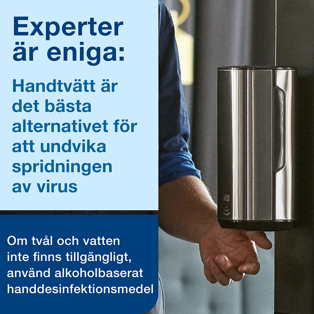 Den förslutna refillflaskan med engångspump minskar risken för smittspridning. Passar i Torks dispenser. Flaskan kan återvinnas och krymper ihop efterhand att den töms och minskar avfallet.