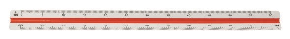 Trekantsskala av plast med inlägg i 2 färger.