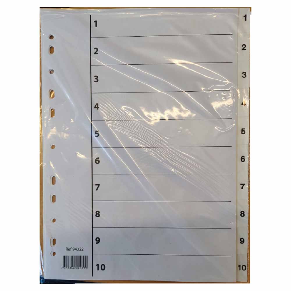 Av vit polypropylenplast. Svart fliktryck. Med försättsblad. Internationell hålning. Styckförpackade.