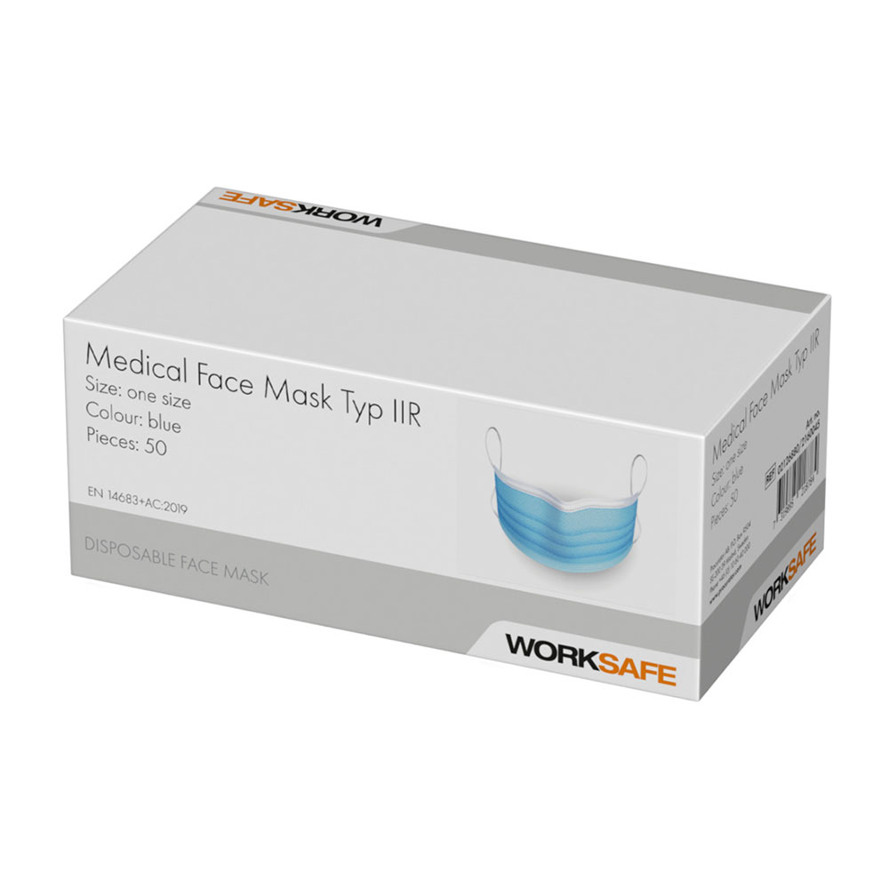 Munskydd Worksafe är ett engångsmunskydd i 3-lagers nonwoven. Ultraljudssvetsade för bästa kvalitet. Vätskeresistent och har en filtreringsgrad - BFE- på >98% och uppfyller alla krav i EN14683:2019. Har ett väldigt lågt andningsmotstånd, vilket gör masken lätt att bära. Testad för att inte orsaka allergi eller hudirritation. Typ IIR.