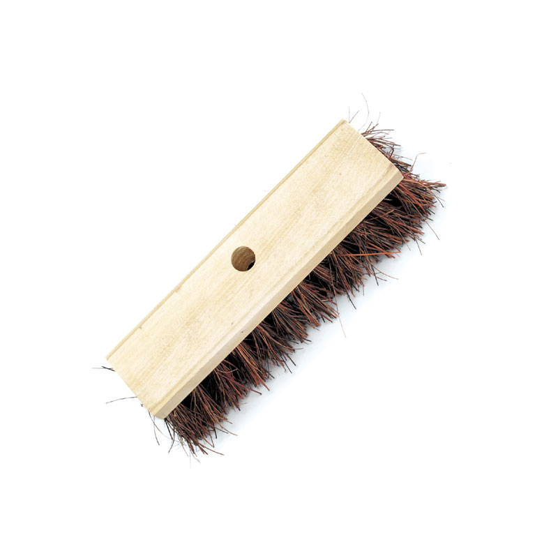 Piassavakvast i naturmaterial med trärygg och hålfäste. Används för sopning av grövre ytor med grov smuts, och kan även användas utomhus. Passar till träskaft med kona eller aluminiumskaft med kloborsthållare.