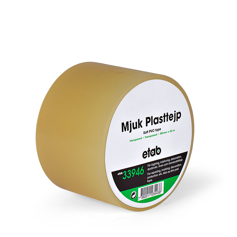 Mjuk PVC-film med gummibaserat häftämne. God UV-tålighet och resistens mot de flesta alkalier och svaga syror. Åldersbeständig. Smidig, vattenfast plasttejp med god häftförmåga.